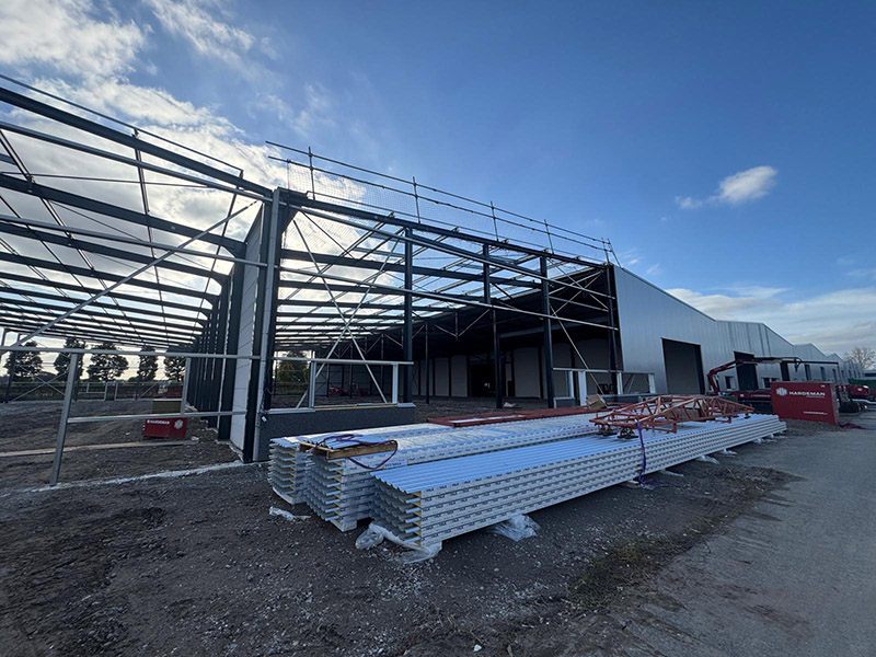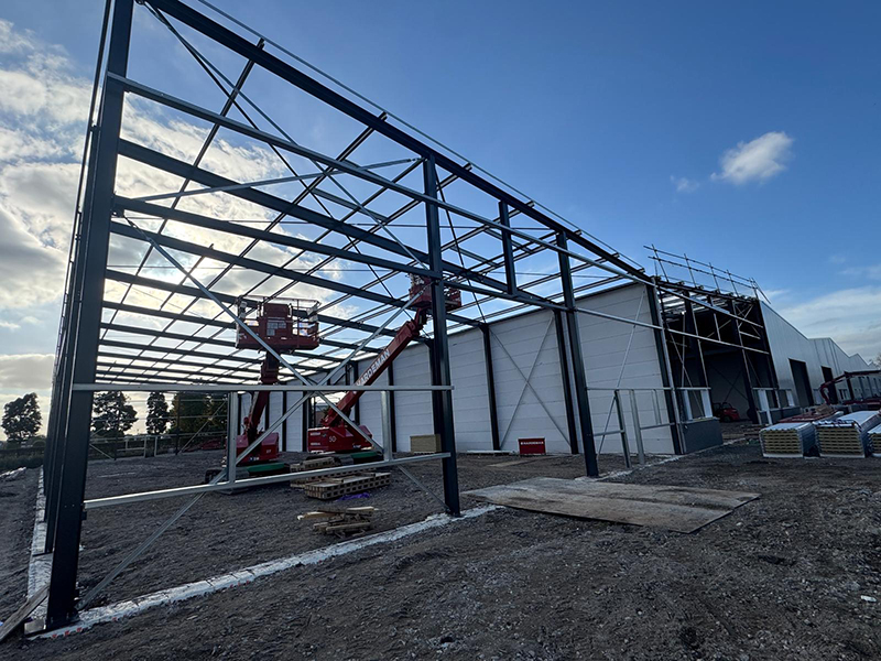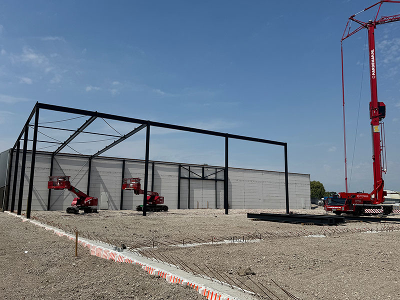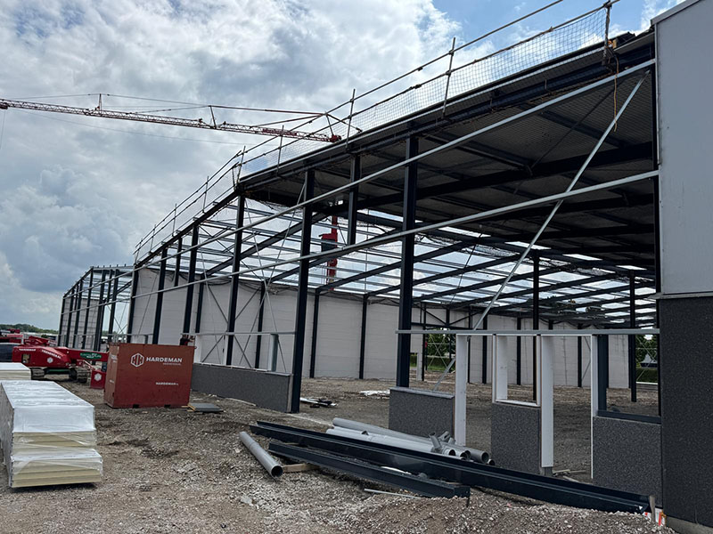 As the project advanced, the first steel structures were erected, marking visible progress on-site. Hall after hall started to rise, with our teams working tirelessly to keep construction smooth and efficient.